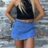 Mini tiro bajo de denim rígido azul con recortes #SKIM.03.R