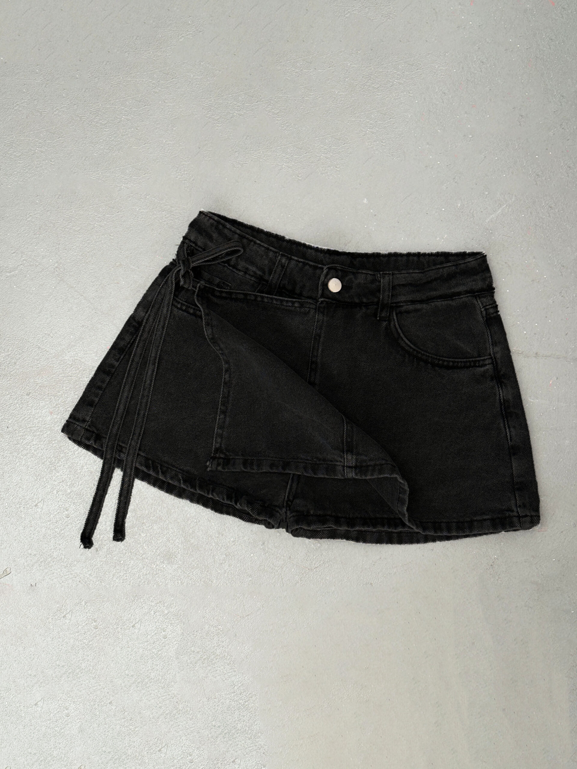 Skort con Solapa y Strap de Denim Rígido Gris #MALI.02